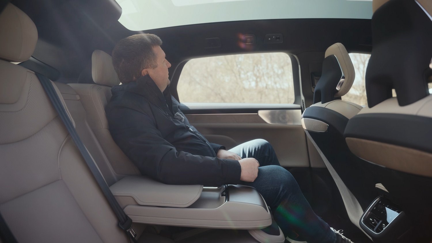 Datorită lungimii totale, ES90 oferă un spațiu generos pentru pasagerii din spate, chiar și atunci când scaunele din față sunt reglate pentru o persoană de statură medie. Spătarele scaunelor posterioare sunt reglabile electric, permițând ajustarea unghiului pentru un confort sporit la drum lung.