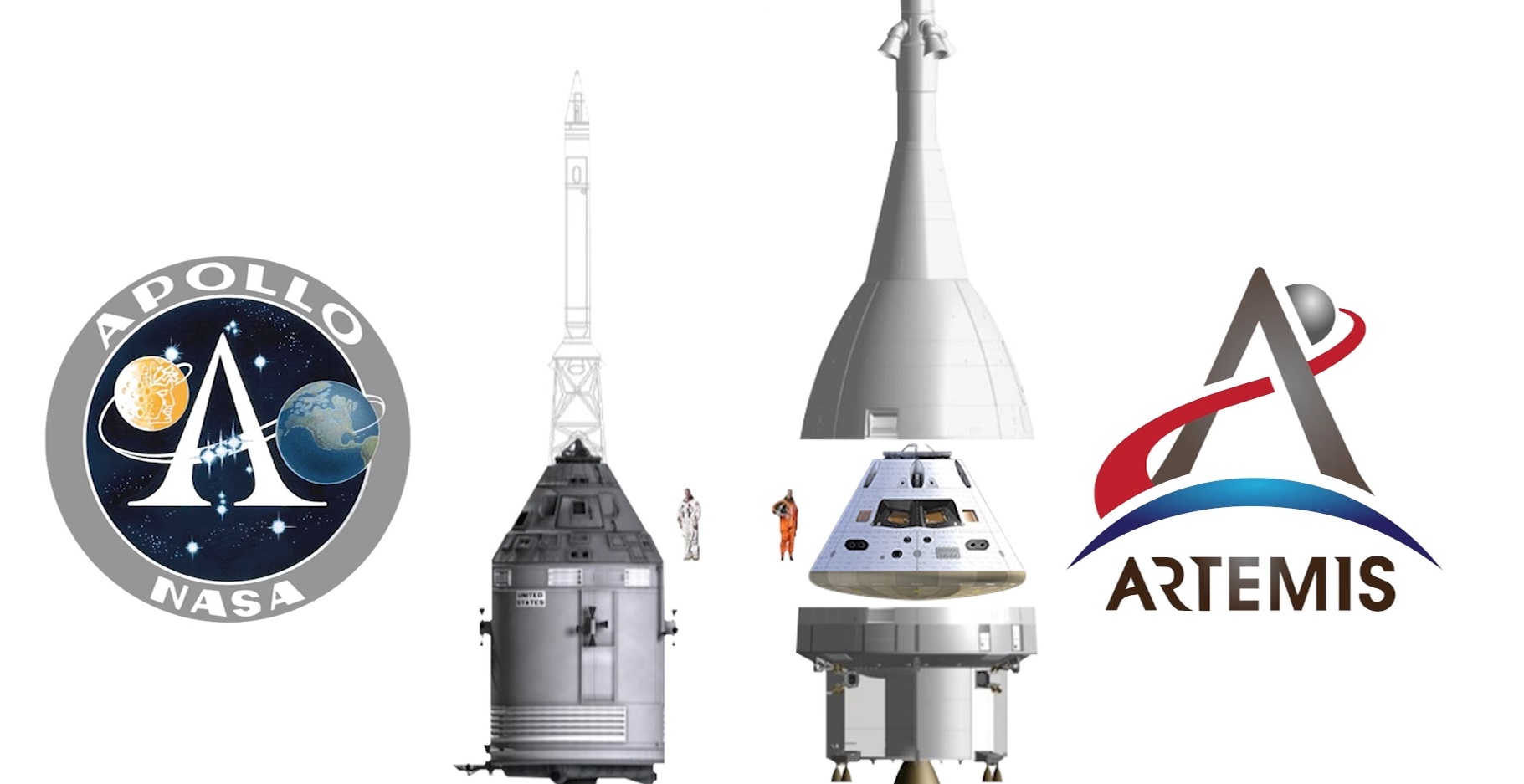 Capsula Apollo vs capsula Orion/Artemis2. Sursa foto: NASA