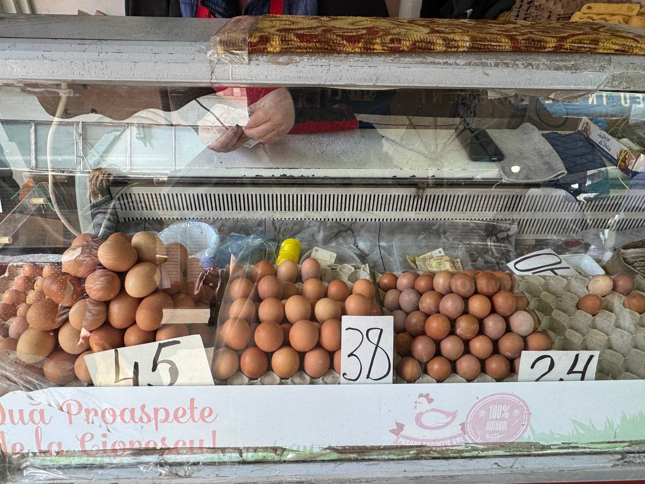 Zece ouă ajung să coste cel mult 45 de lei, dar pot fi procurate și cu 38 lei, prețul depinde de mărime, culoare și dacă sunt de casă sau de la avicolă.