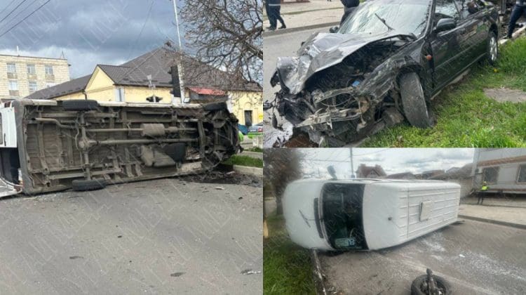 Microbuz cu pasageri, răsturnat la Tiraspol: Mai multe persoane ar fi ajuns la spital. VIDEO de la fața locului