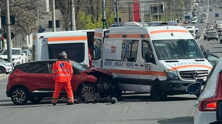O ambulanță și un Renault au fost grav avariate, după ce s-au ciocnit în această dimineață, 7 aprilie, la intersecția străzilor Mihai Viteazul și Mitropolit Dosoftei din Chișinău. Din fericire, în urma impactului nu au fost raportate victime.