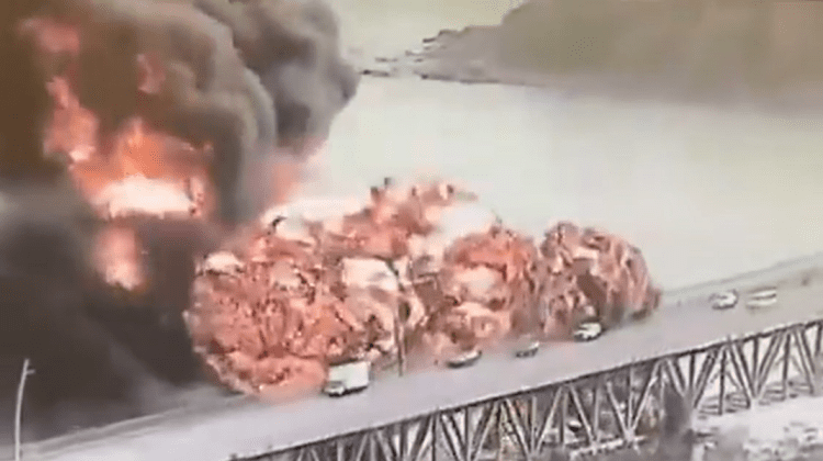 Imagini video publicate pe rețelele de socializare au surprins momentul exploziei, unde un autobuz care traversa podul era pe cale să fie lovit de minge de foc. Totodată, flăcările s-au răspândit rapid deasupra drumului, în timp ce șoferii încercau să se îndepărteze cât mai repede de calea focului.