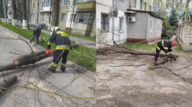 Astfel, pompierii au intervenit pentru defrișarea și înlăturare arborilor doborâți de pe drumurile din țară, în satul Chiștelnița, raionul Telenești, și în satul Șestaci, raionul Șoldănești. Totodată, acțiuni de defrișare au avut loc și în municipiul Chișinău, pe strada Mesager 2, unde un copac s-a prăbușit pe carosabil, blocând circulația.
