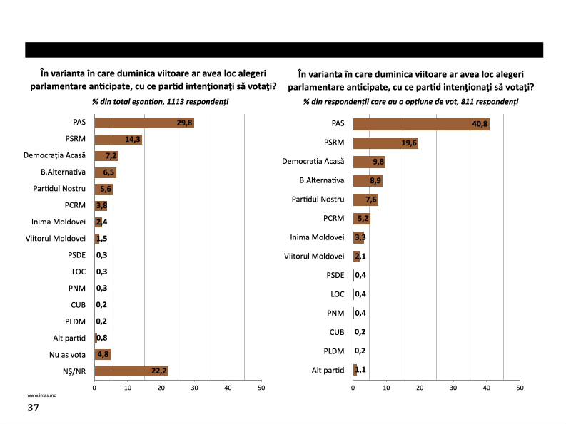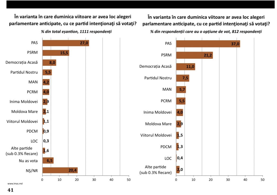 Articolul Sondaj IMAS: PAS pierde din avans, PSRM și Democrația Acasă cresc ușor în preferințele alegătorilor apare prima dată în Realitatea.md.