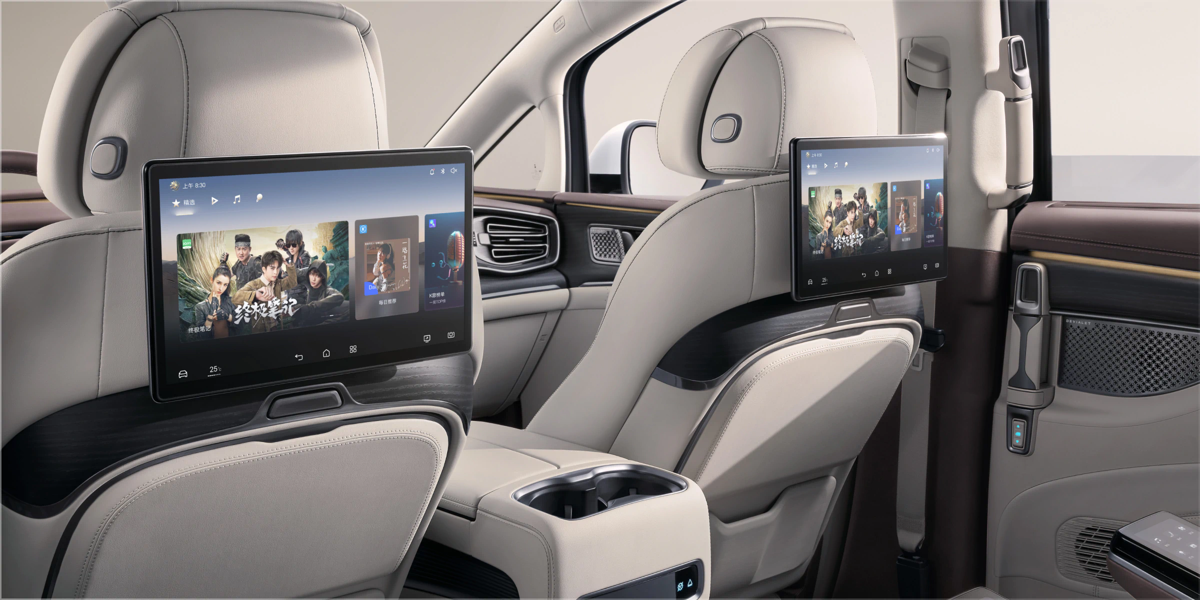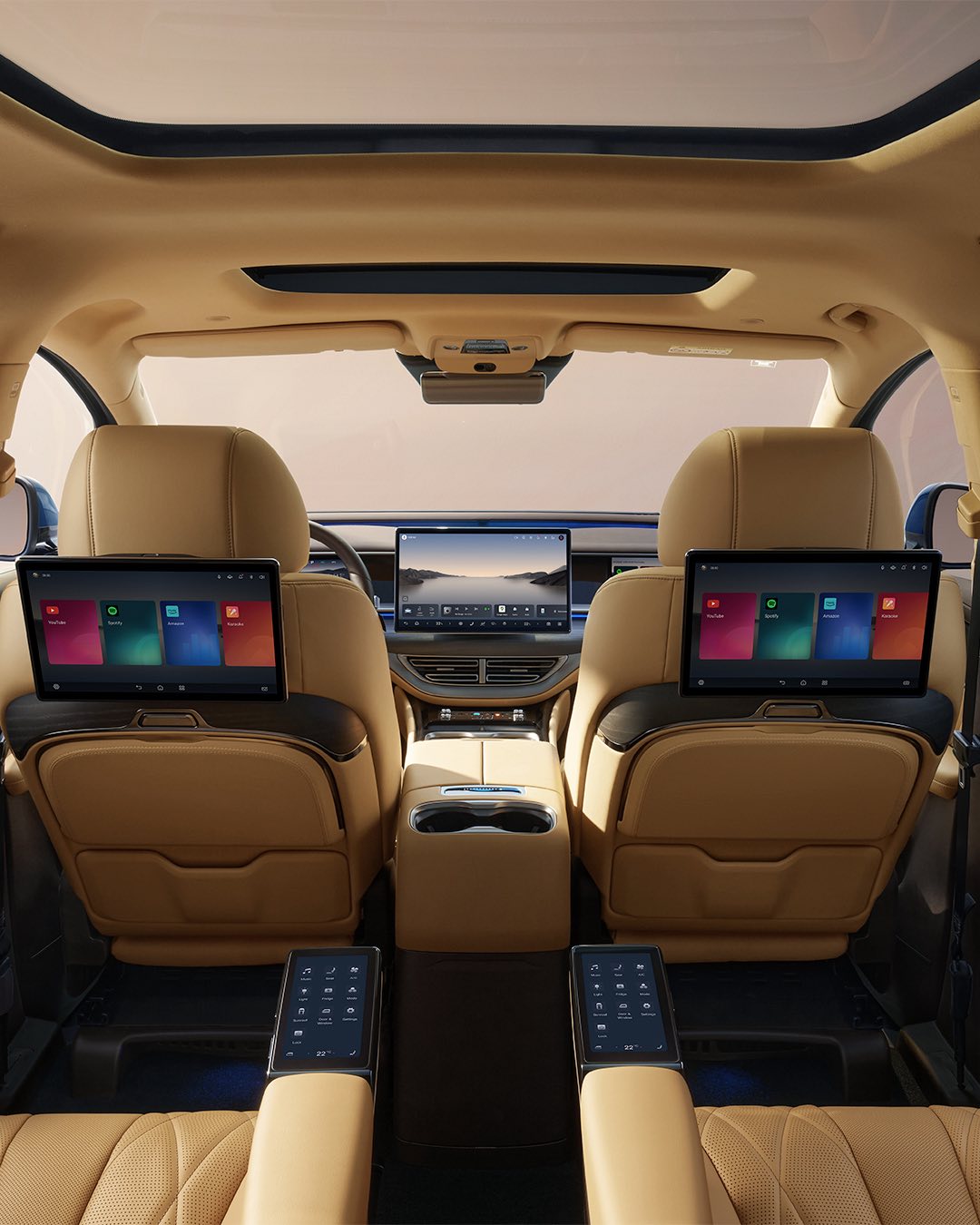 - Opțiune: ecrane multimedia de 12.8 inchi montate pe spătarele scaunelor frontale