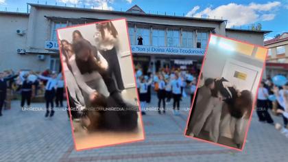 (video) Bătaie la un liceu de la Buiucani. Două minore, filmate cum se trag de păr și își împart pumni: „Nu vezi că sunt cu ghiozdanul, fa?”