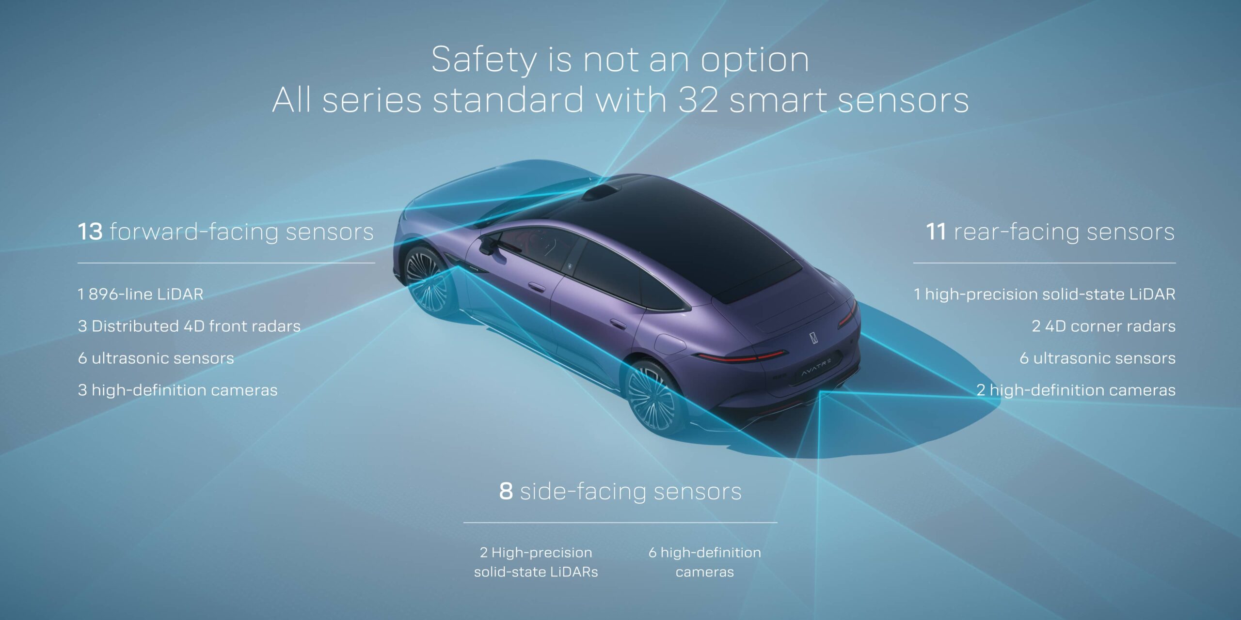 - 1 × LiDAR cu 896 de linii (primul model din industrie cu această tehnologie)