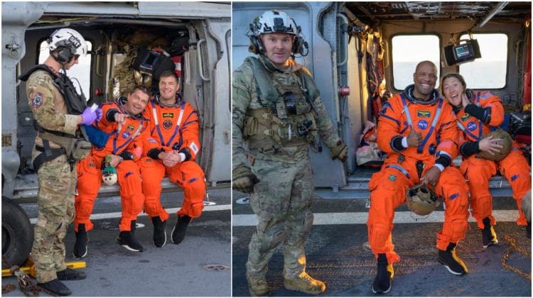 Astronauții au fost recuperați rapid de echipa de salvare a navei USS John P. Murtha, fiind transportați ulterior la bordul acesteia cu elicopterul, unde au trecut prin primele controale medicale.