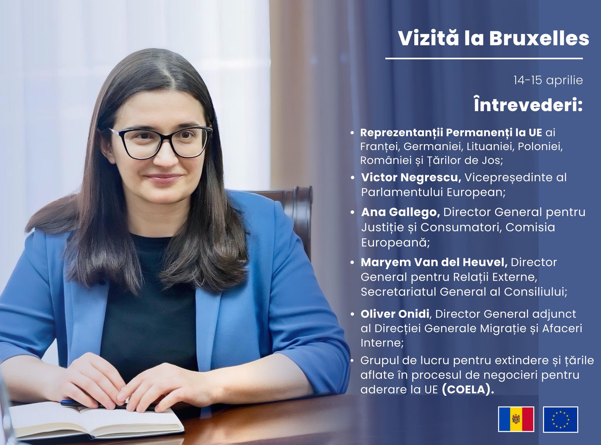 Viceprim-ministrul pentru Integrare Europeană, Cristina Gherasimov, se află la Bruxelles în perioada 14–15 aprilie, unde are programate mai multe întrevederi cu oficiali europeni și participă la discuții privind procesul de aderare al Republicii Moldova la Uniunea Europeană.