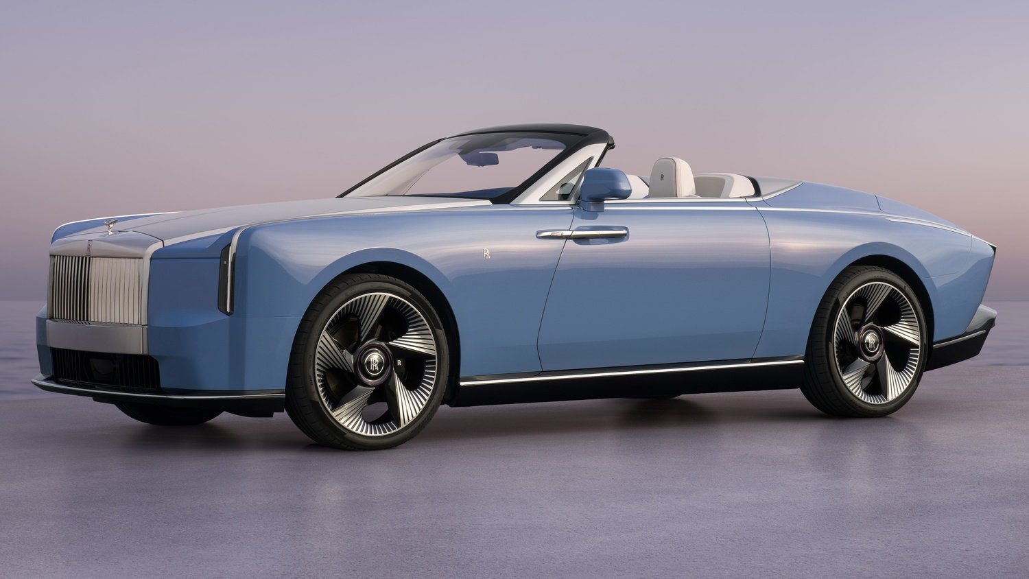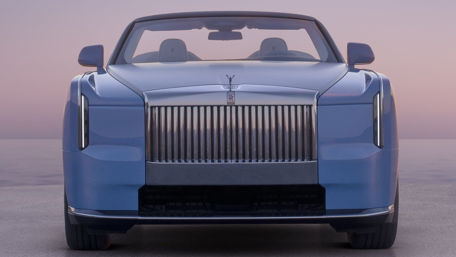 Grila în sine este o interpretare îndrăzneață: un cadru generos, lat de aproape un metru, care pare sculptat dintr-un bloc solid de oțel inoxidabil, cu 24 de lamele adânc încastrate. Figurina Spirit of Ecstasy este integrată deasupra grilei, într-o secțiune ușor adâncită, liniile sale curgând spre spate și dizolvându-se în capotă.