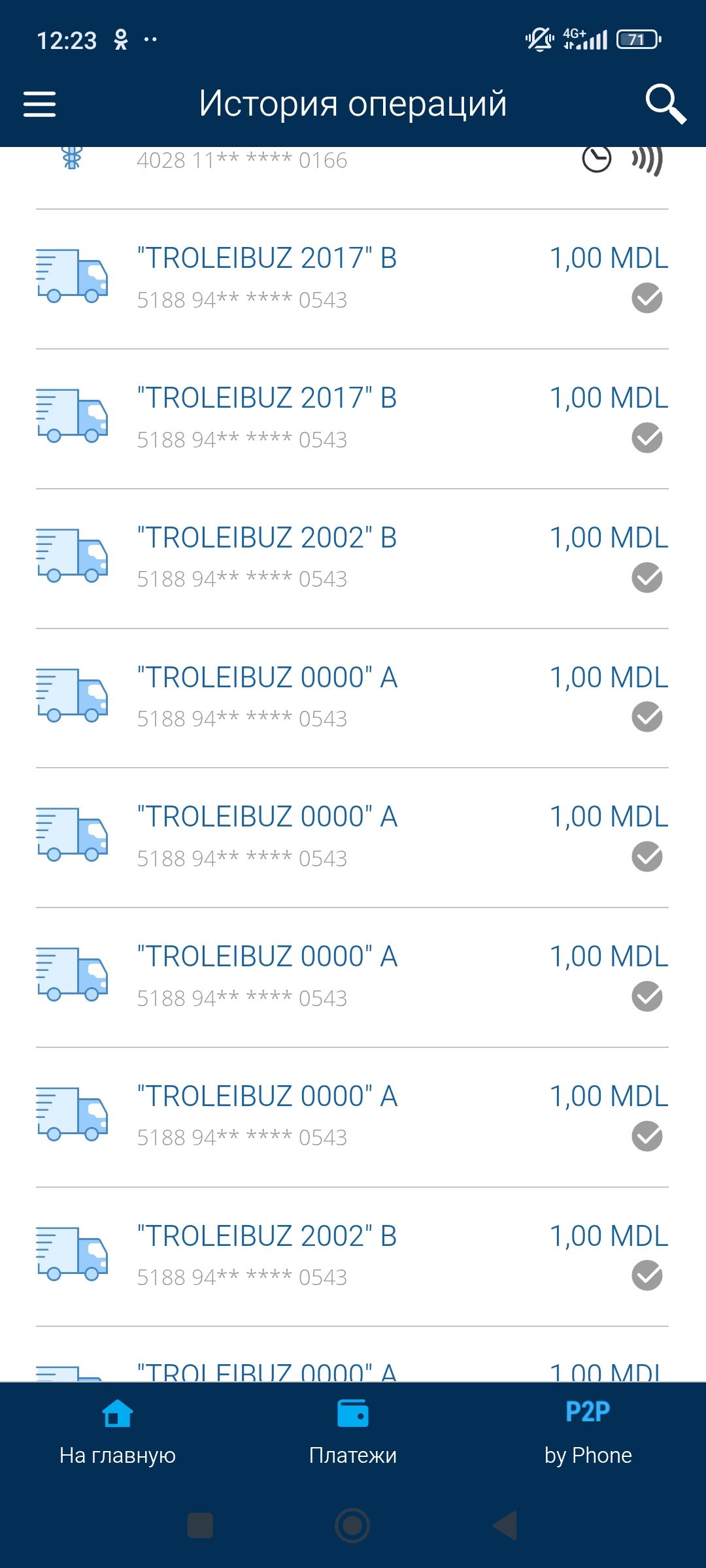 Mai multe retrageri de bani de pe cardurile bancare ale locuitorilor din municipiul Bălți au fost înregistrate în noaptea trecută, tranzacțiile fiind indicate ca plăți pentru călătorii cu troleibuzul. Potrivit informațiilor apărute pe rețelele sociale, este vorba despre tranzacții repetate, în sume mici, efectuate într-un timp scurt.