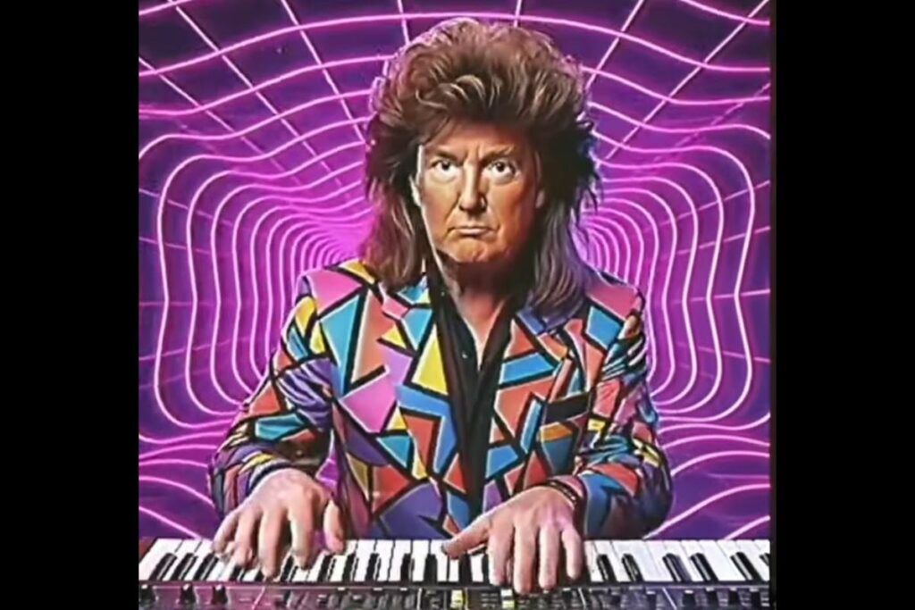 Imaginile îl arată pe Trump într-o versiune stilizată, inspirată din estetica disco, cântând la un sintetizator, într-un decor care amintește de videoclipurile anilor ’80.