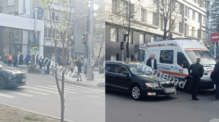 Un bărbat care circula pe bicicletă electrică a fost tamponat în centrul Capitalei. Accidentul s-a produs joi, în jurul orei 17:15, la intersecția străzilor A. Pușkin cu Alexandru cel Bun.