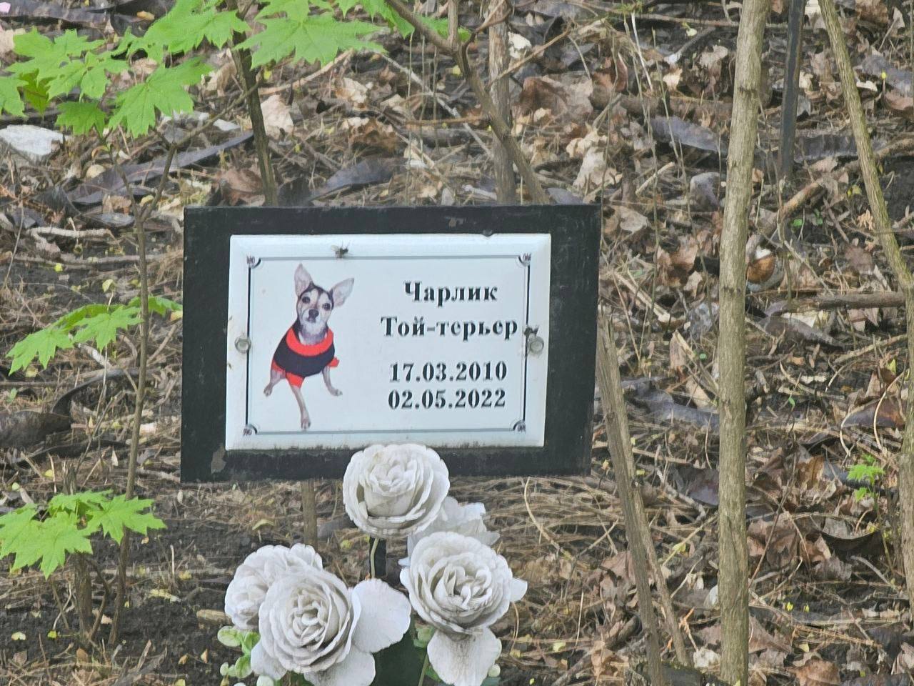 Un detaliu care a atras atenția este prezența unei cruci ortodoxe pe mormântul unui animal.