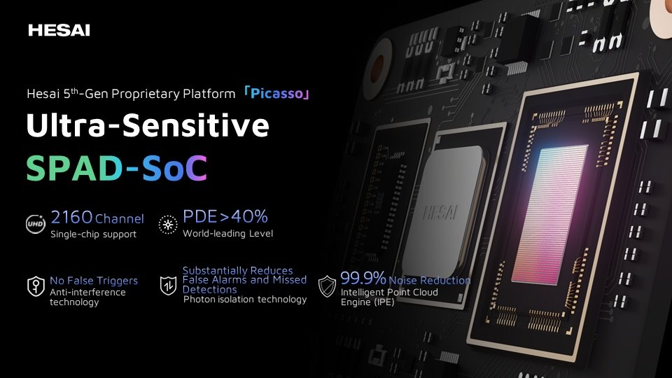 Hesai Technology, lider global în tehnologie inteligentă și percepție 3D, lansează Picasso, primul SPAD-SoC* LiDAR 6D full-color din lume, care integrează percepția geometrică și culoarea la nivel de cip. Platforma ETX (cu până la 4320 de canale) intră în producție de masă în a doua jumătate a anului 2026.