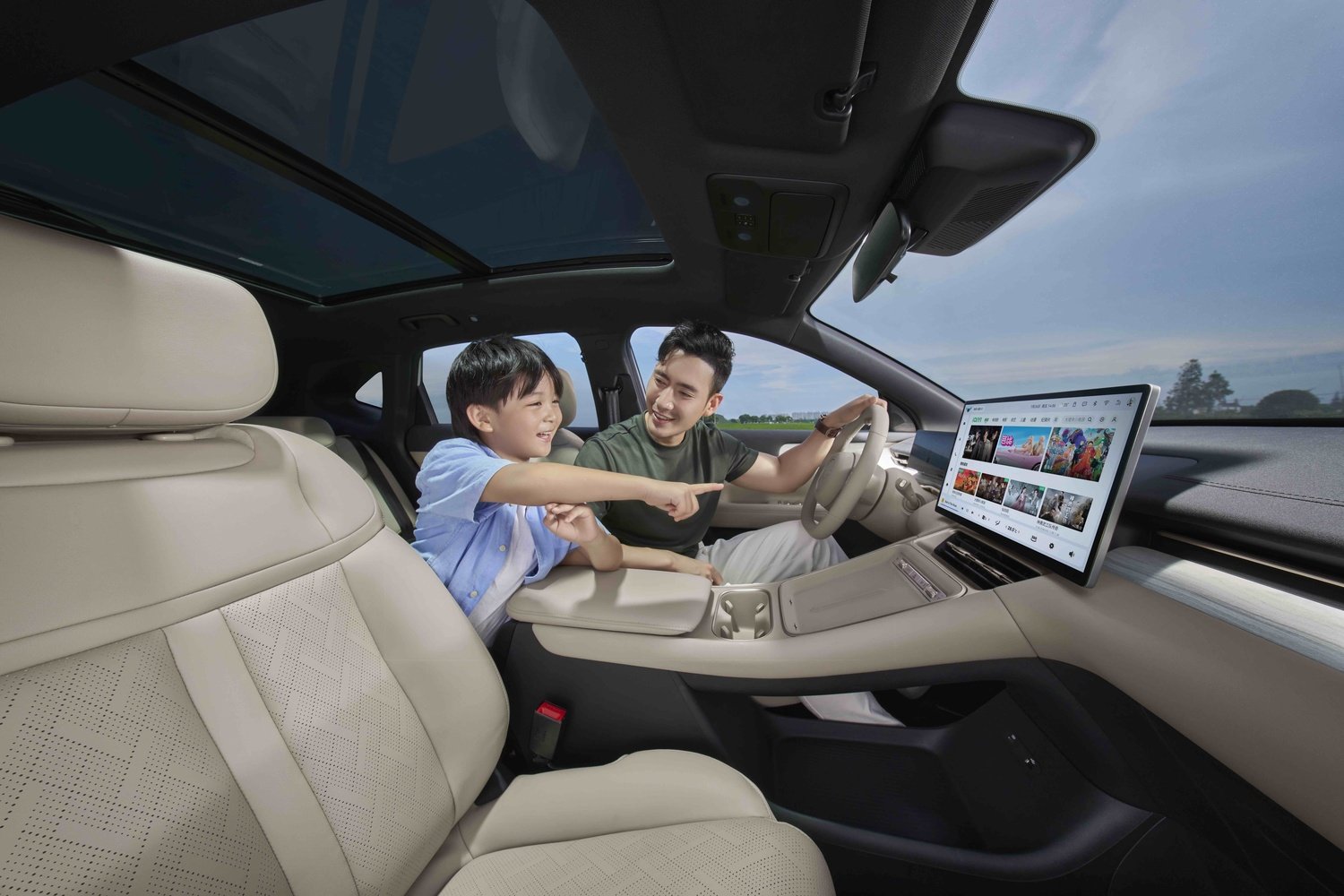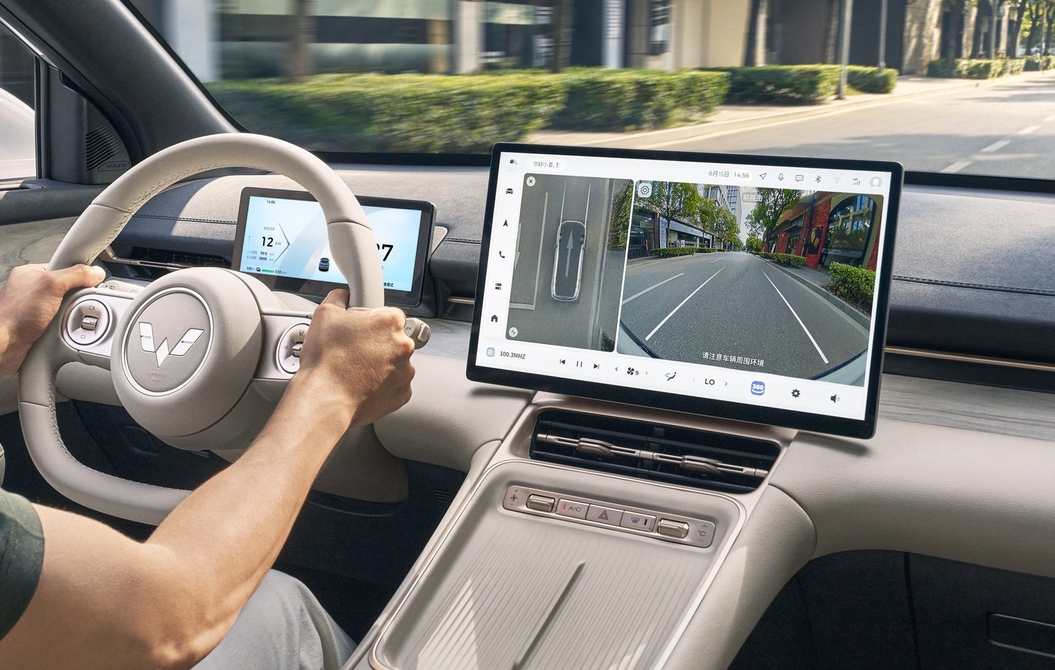 - Ecran central de 15.6 inchi cu vizualizare de pe camerele 360