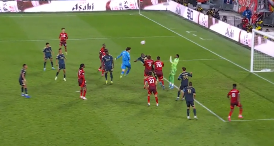 Portarul lui Toronto din MLS a urcat în careu la ultima fază a meciului și a reluat cu capul o centrare venită de la Alonso Coello, salvând un punct pentru echipa.