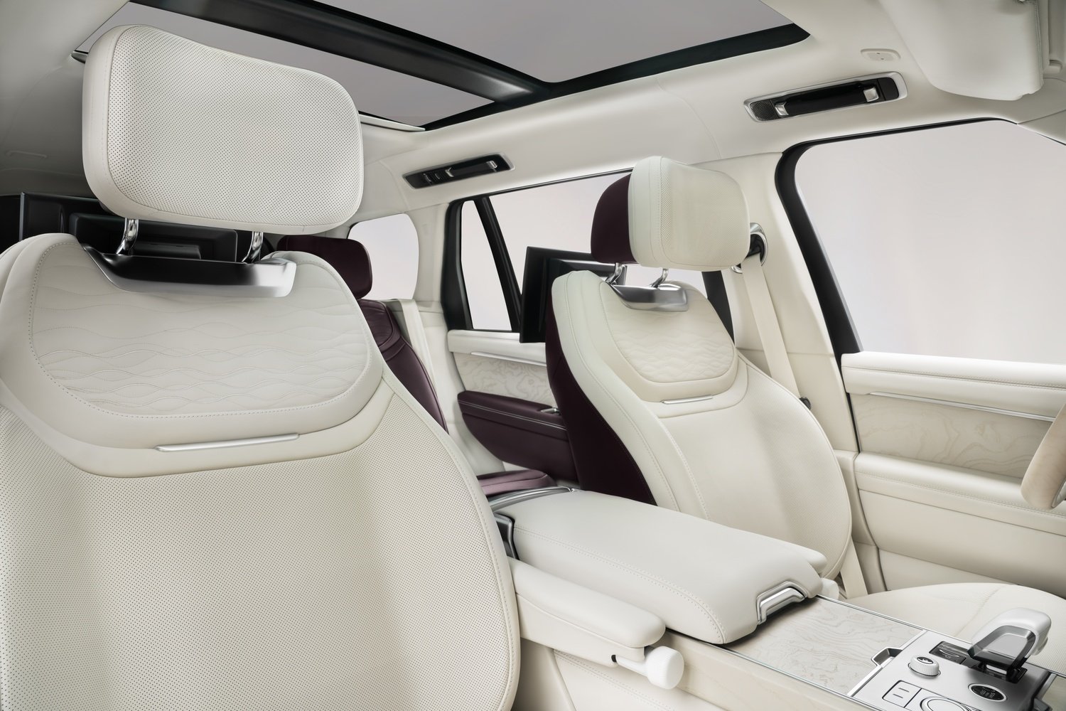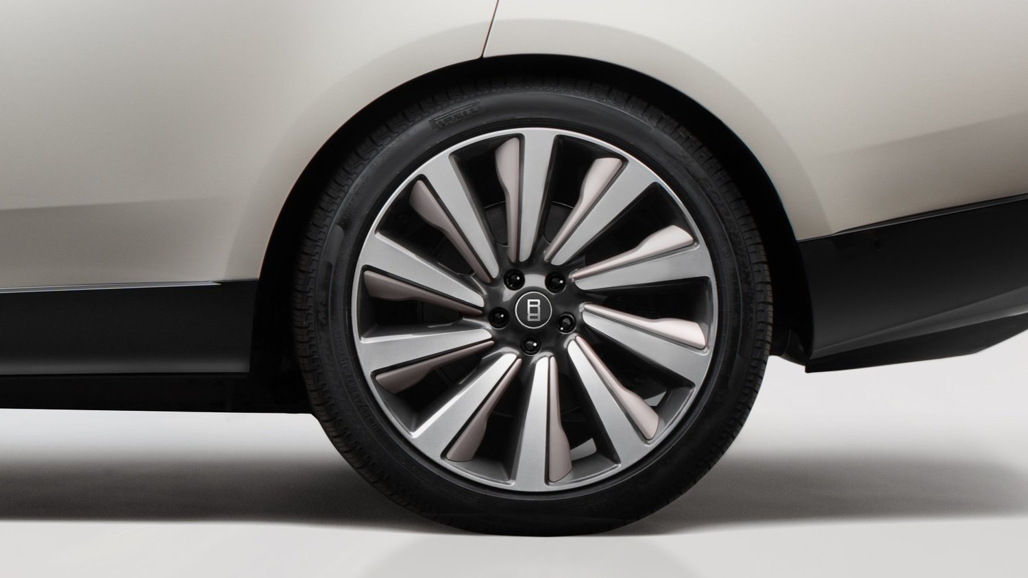 De asemenea, pentru prima dată, noul logo Range Rover (sub forma a două litere R care se oglindesc pe verticală, prezentat anul trecut în timpul unei prezentări pentru investitori) este vizibil pe un model de serie (în acest caz pe jante), fiind dedicat exclusiv modelelor SV Bespoke.
