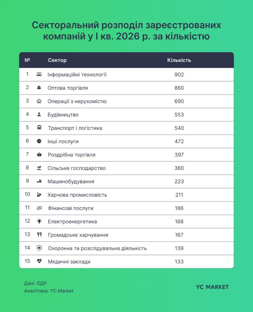 În general, structura noilor înregistrări arată o reorientare a activității de afaceri către „cifre” și servicii, în timp ce industriile tradiționale, inclusiv sectorul agroalimentar al economiei ucrainene, prezintă fie o dinamică mai slabă, fie un declin.