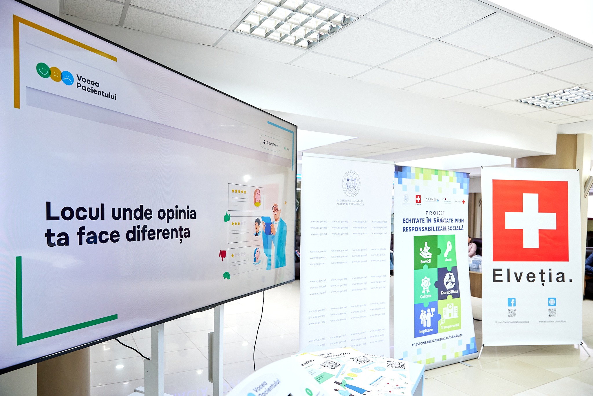 Platforma „Vocea pacientului” este dezvoltată în cadrul proiectului „Echitate în sănătate prin responsabilizarea socială”, implementat de Crucea Roșie din Elveția în parteneriat cu Ministerul Sănătății, AO „CASMED” și AO „HOMECARE”, cu sprijinul financiar al Guvernului Elveției.
