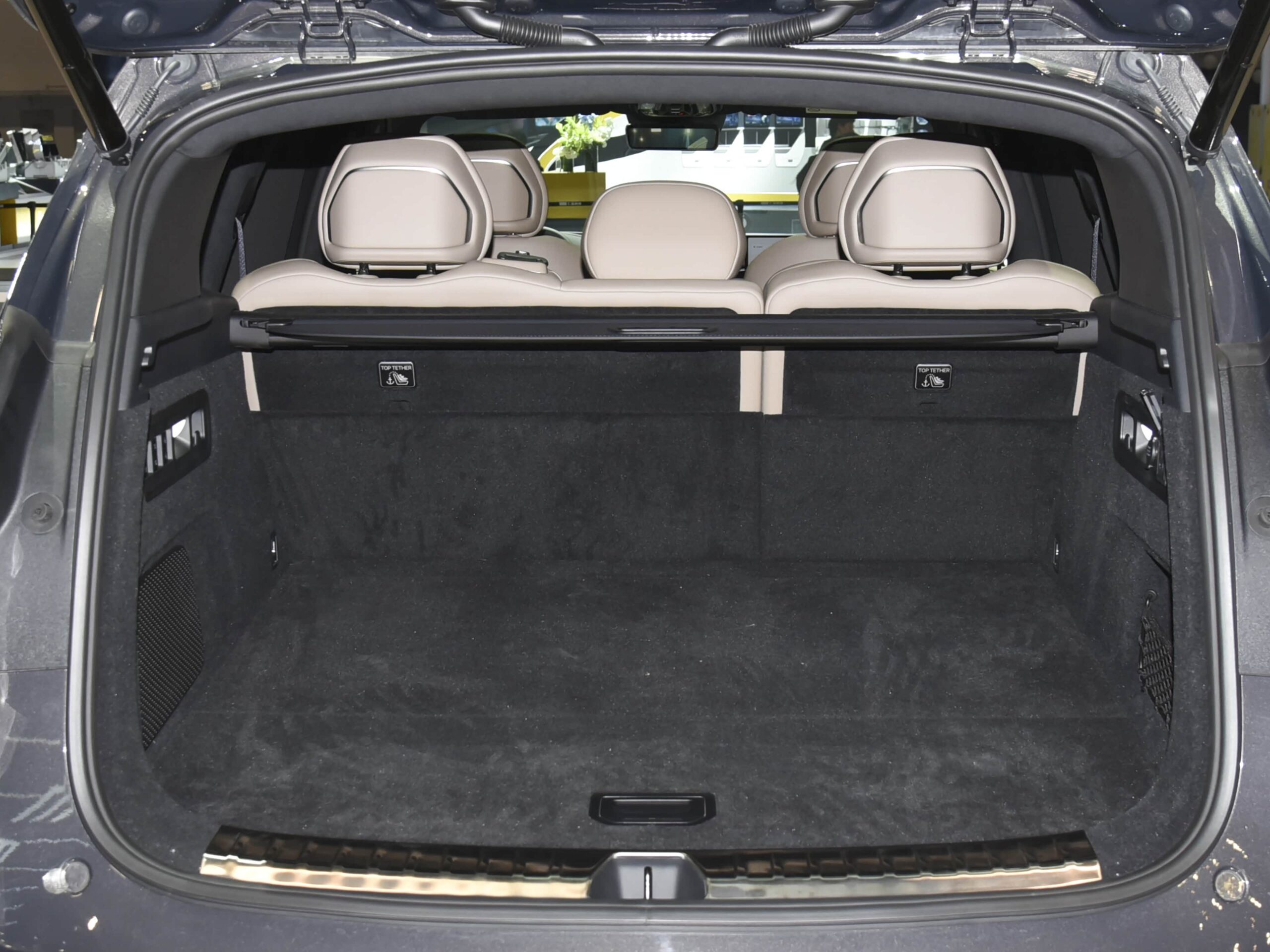Modelul este disponibil doar pentru maximum cinci pasageri (să ne fie iertată greșeala din video). Portbagajul este generos, iar spătarele banchetei posterioare pot fi rabatate electric prin comenzi găsite în acesta.