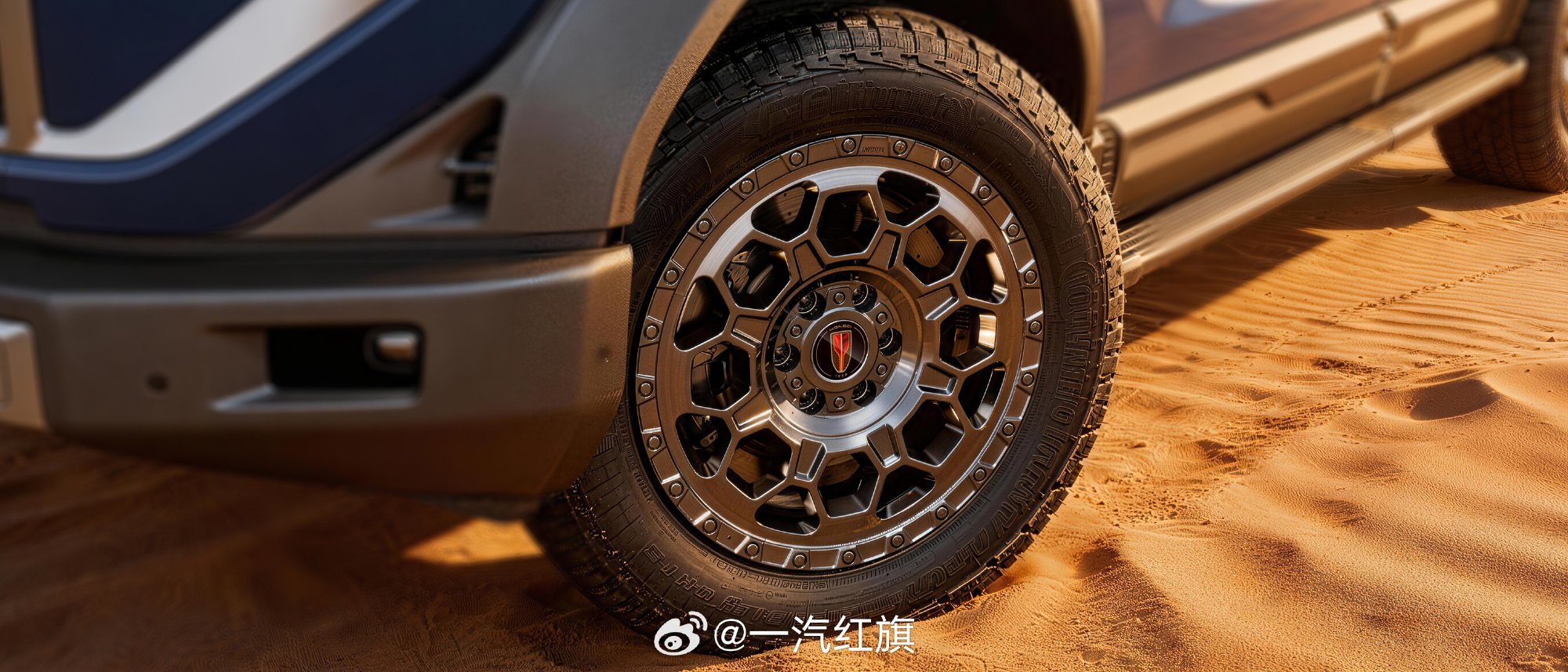 Noua dezvoltare este inspirată de conceptul Hongqi Off-Road de anul trecut. Aceasta primește o caroserie pătrățoasă cu un bodykit off-road dezvoltat, în care designerii chinezi au integrat faruri rotunde retro-stilizate și celebra grilă de radiator monumentală a Hongqi cu un „steag roșu” în centru.