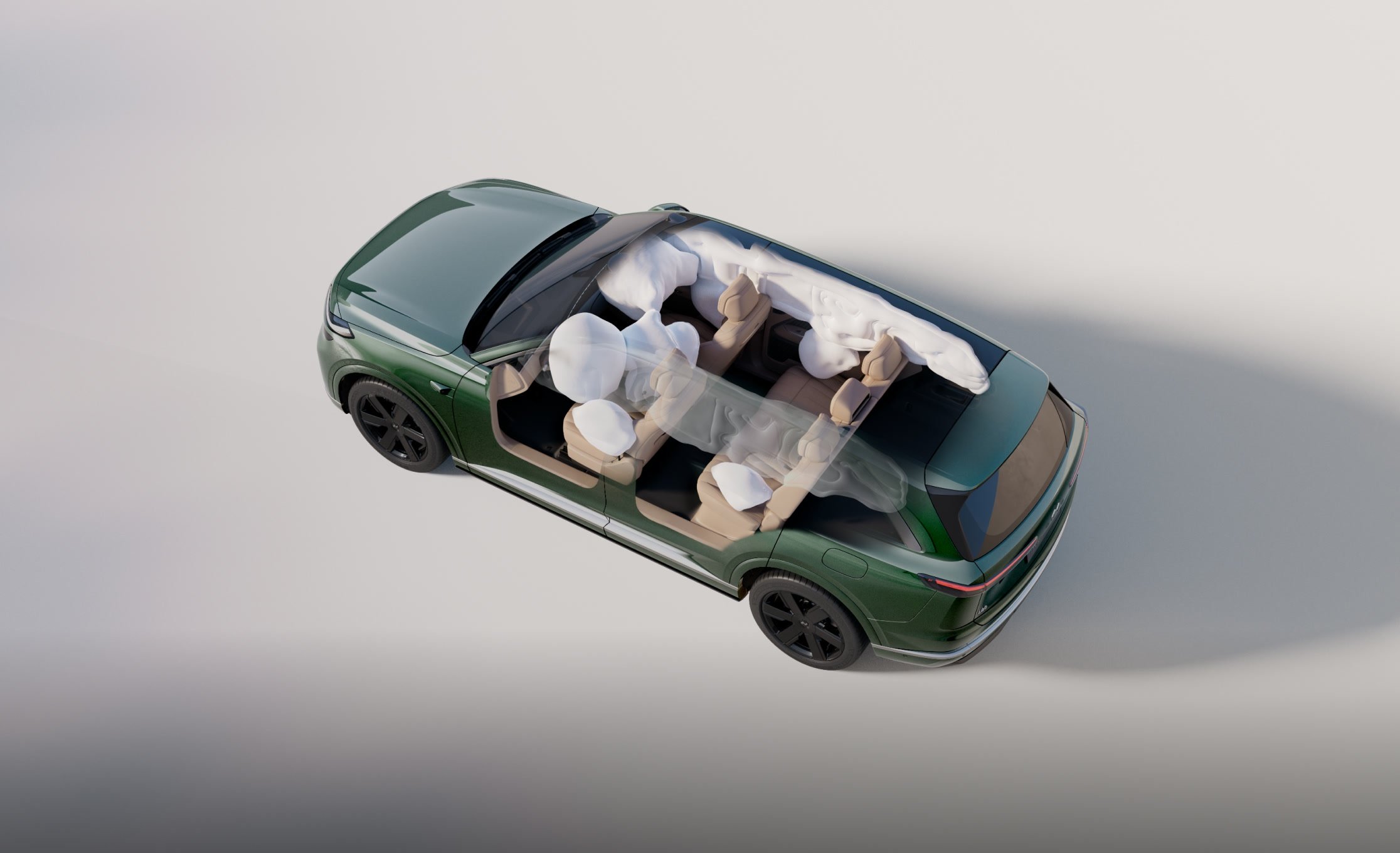 - 9 perne standard (inclusiv un airbag central între ocupanții față și airbag lateral mare pentru rândul secund)