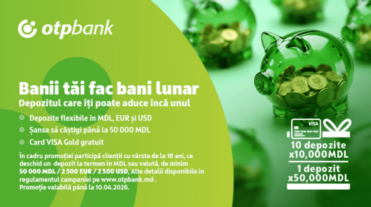 Siguranța financiară este fundamentul pe care se construiește orice vis, iar OTP Bank este aici să susțină acest parcurs pentru fiecare cetățean. Un depozit la termen nu este doar un instrument de economisire, ci o alegere strategică pentru cei care prețuiesc stabilitatea și creșterea constantă. Pentru a răsplăti încrederea clienților, transformăm economisirea într-o oportunitate de… Continuă lectura Câștigă în timp ce economisești: La OTP Bank poți câștiga unul dintre cele 10 depozite a câte 10.000 MDL sau marele premiu de 50.000 MDL!